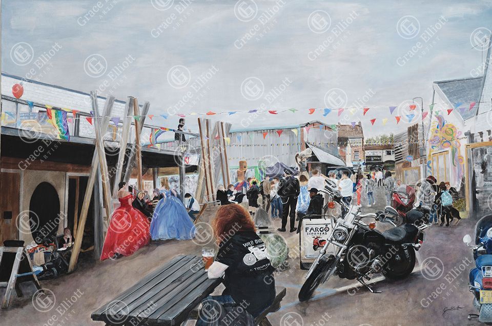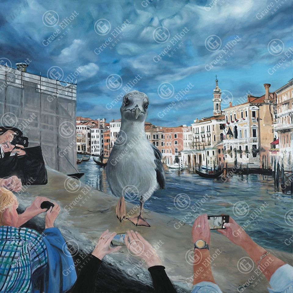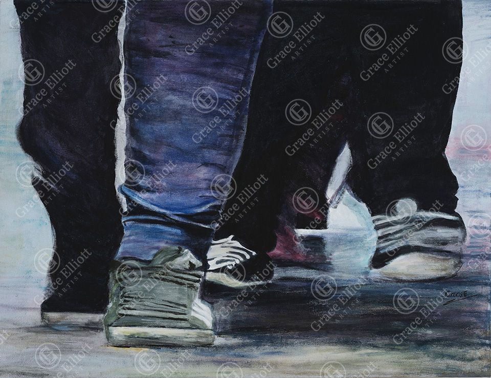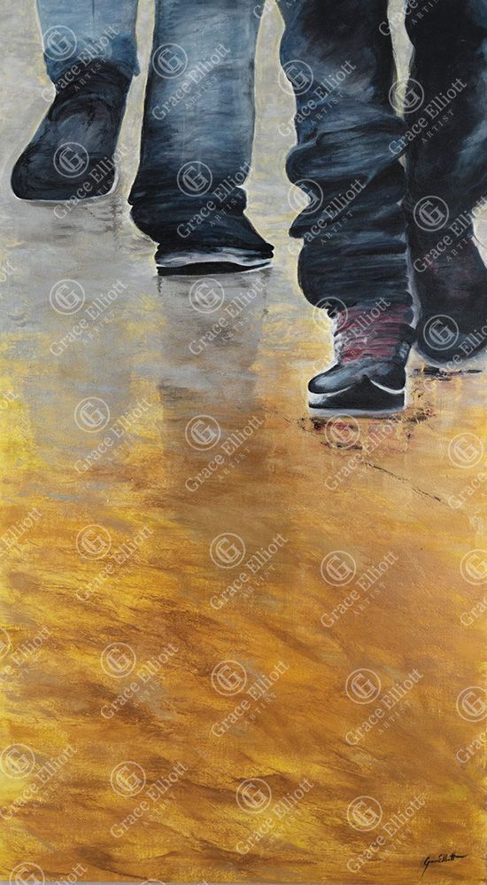 Today, she paints primarily with oils and acrylics in a traditional manner, but with a contemporary twist. She creates figures with anonymity, driven by her desire to capture a gathering of people with a collective ambiance or emotional connectivity, which enables the viewer to engage. Also, notice her sense of quirky humour!